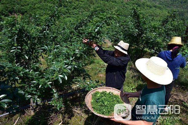 3.【云阳县新津乡花椒地长势喜人 6月将全面采摘】5月19日,在新津乡太胜村的九叶青花椒基地里,绿油油的花椒籽挂满枝头,散发着特别的清香,椒农们趁着晴好天气,开始采摘青花椒,预计6月进入全面采摘期。