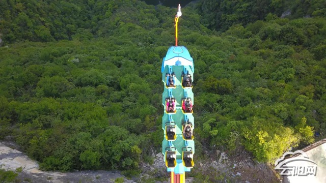 整个云端飞船看起来像一个矗立在悬崖边的跷跷板,一共有八个座位,运行时,座位从后端迅速滑向悬崖一端,然后整个轨道由平行悬崖变成垂直悬崖,乘客就会直接冲向700多米深的悬崖底部,然后通过紧急刹车,让游客体验“悬崖勒马”般的惊险刺激。