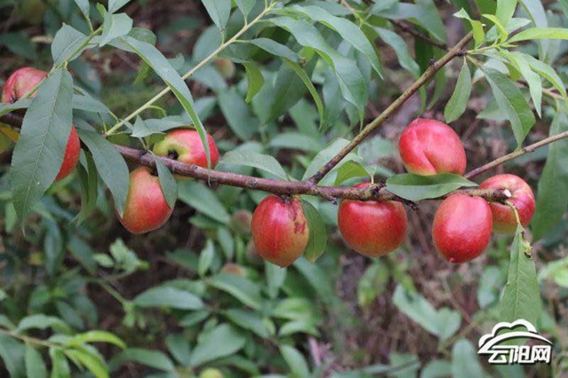 去年4月,这里千亩桃花竞相绽放,美不胜收。如今,桃花已变成了鲜果,而成熟期最早的红珍珠油桃早已按捺不住,爬上树梢,将树枝压弯了腰。