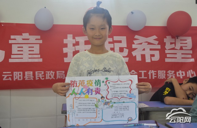 本次活动分为“疫情防控手抄报”“未成年人保护法知识学习”两大主题板块进行开展。活动刚开始,小朋友们就在开始拿起五彩斑斓的画笔开始制作手抄报,社工为小朋友们讲解着新冠肺炎的防控小知识,不一会,在孩子们富有想象力的创造中,一幅幅精美的手抄报就完成了。随后,小朋友手里又拿起《未成年人保护法》宣传单,当遇到不懂时,社工结合实际案例告知小朋友学会如何保护自己。