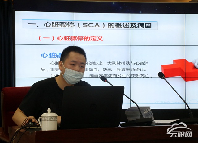 培训会上,来自红十字协会的医务工作人员从常用急救技术进行了专题演讲,用通俗易懂的语言,图文并茂的方式从心肺复苏、电击除颤仪使用、多发伤救治、急救原则等方面进行了详细讲解。
