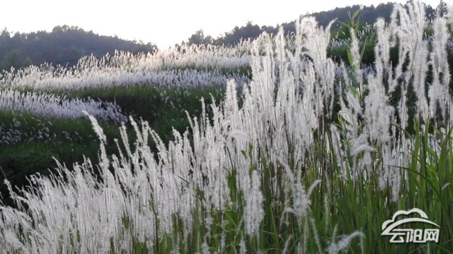 蔈草镇兴坪村李子园里长出成片野生丝茅草,汇聚成了一片天然的“花海”,吸引行人驻足拍照留影。(陈小娅 摄)