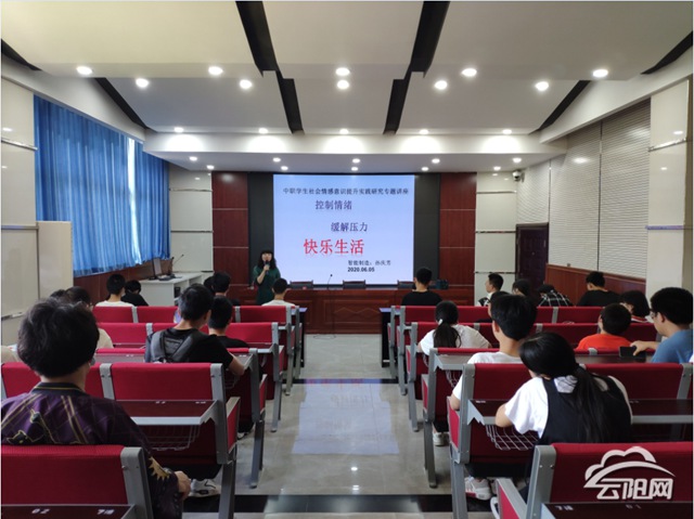 云阳网讯(通讯员 张小林)为帮助学生控制情绪,缓解压力,快乐学习和生活,近日,云阳职教中心举办心理健康教育讲座,对学生进行心理疏导,帮助学生缓解心理压力。讲座由全国三级心理咨询师孙庆芳主讲。