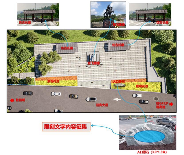 为展现云阳城市形象,提升文化内涵,在高速路口下道入城对云阳留下美好的第一印象。现就迎宾广场入口景石宣传语内容向社会公开有奖征集活动(详附图)。