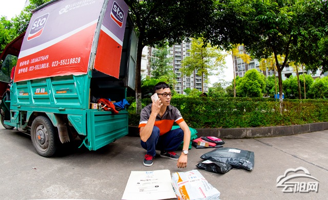 《快递小哥》 6月18日,殷光琼摄于云阳县绿森名都小区。
