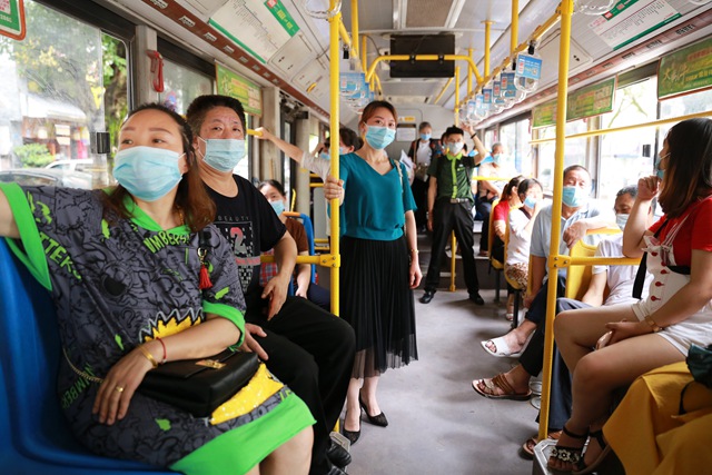 《防疫中的公交车上》 6月18日10点27分,胡建华摄于云阳公交车上 。