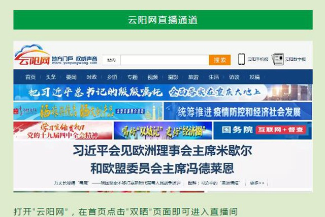 打开“云阳网”,在首页点击“双晒”页面即可进入直播间