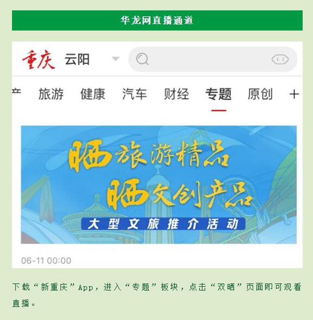 下载“新重庆”App,进入“专题”板块,点击“双晒”页面即可观看直播。