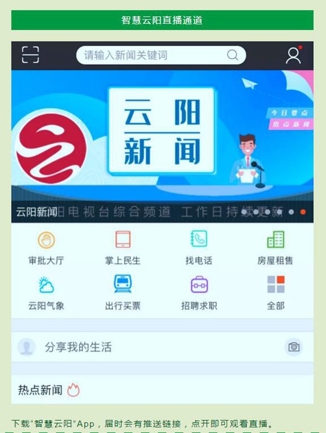 下载“智慧云阳”App,届时会有推送链接,点开即可观看直播。