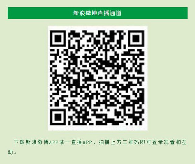 下载新浪微博APP或一直播APP,扫描上方二维码即可登录观看和互动。