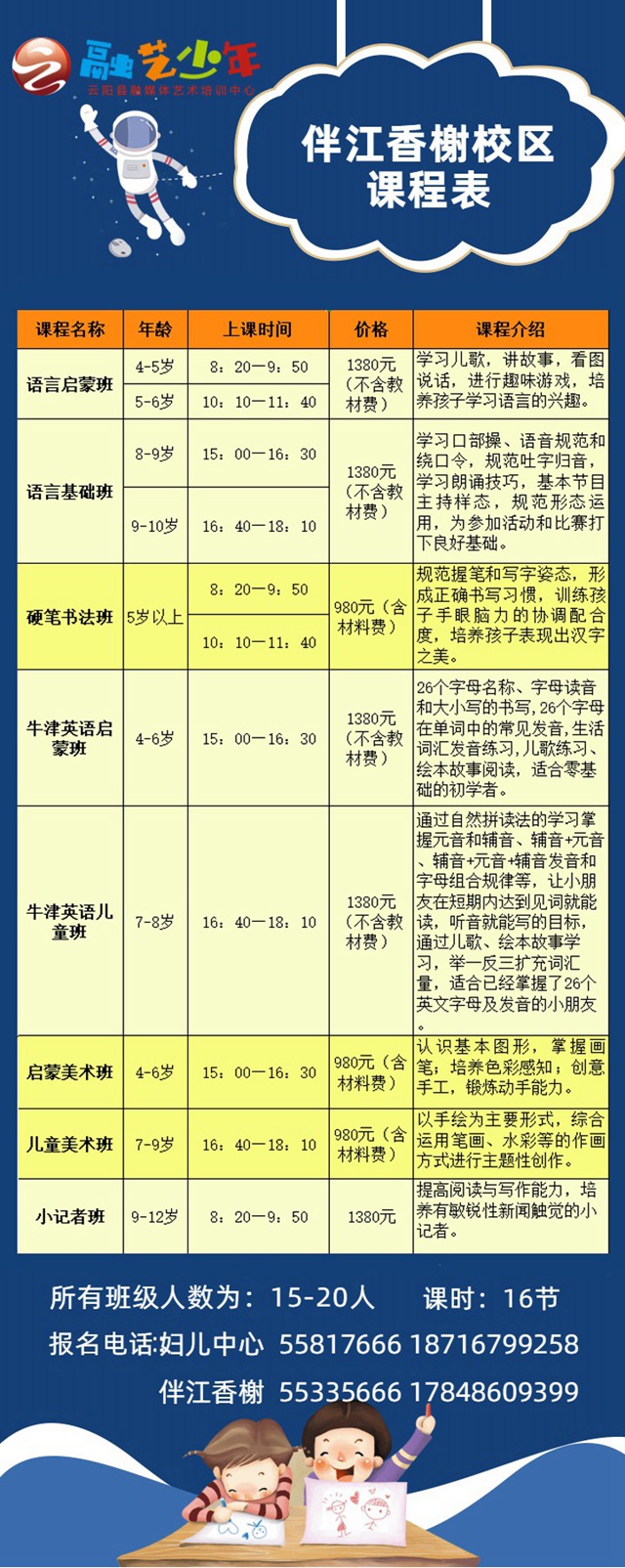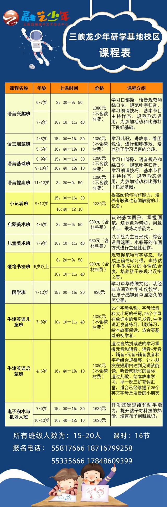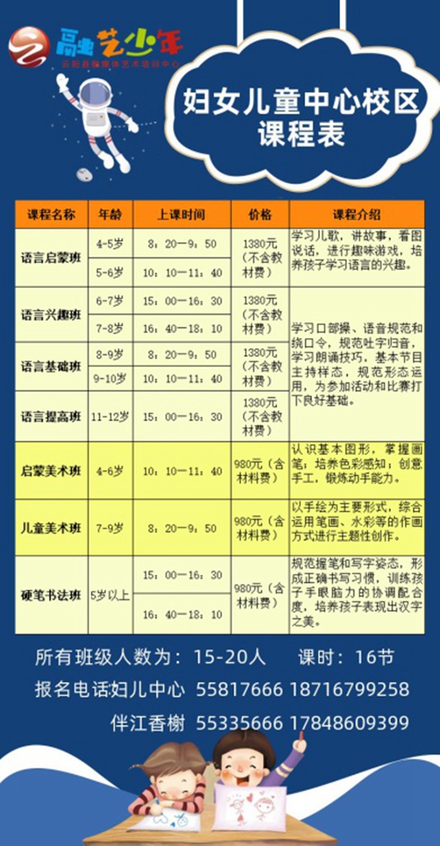 凡云阳援鄂医务人员子女报暑期班,可享受一科全额免费,报多科同样享受以下优惠。