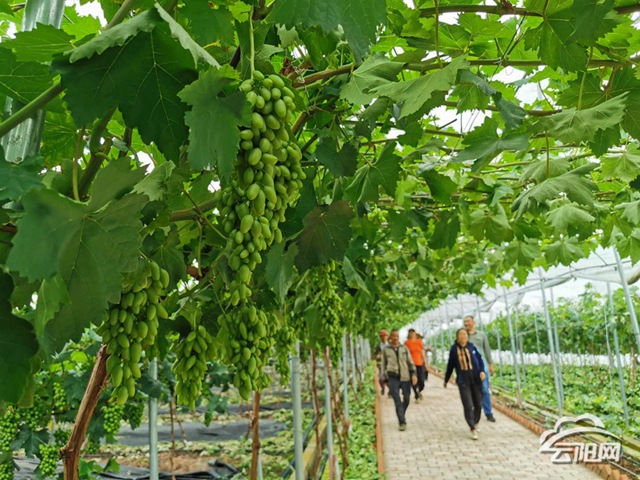 该园是全县现代葡萄园示范基地,栽植了“夏黑”“美人指”“阳光玫瑰”等葡萄幼苗。两年不到的时间里,基地从优良品种选育、生产管理、现代农业科技运动等方面进行建设,打造了一座高效、高产、无公害的葡萄园。同时,该园采用了避雨栽培、限根栽培技术进行精细化管理,通过在葡萄树根部铺上发酵后的牛粪、松针等进行土壤改良,去年2月栽种的葡萄母株,今年已经能产出,亩产能达到1250公斤。
