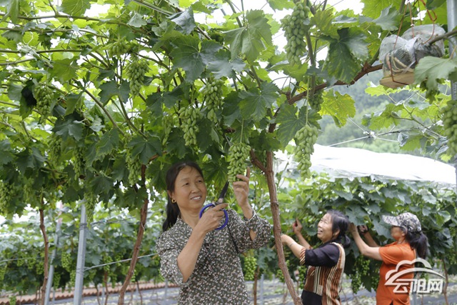 云阳网讯(记者 王彬彬 赵晓龙)6月22日,走进凤鸣镇马轩村的多集合现代农业产业园,一个个标准化的种植大棚整齐划一,一串串晶莹剔透的葡萄挂满葡萄架,工人们正忙着剪枝梳叶、清理坏果、摘套袋等。