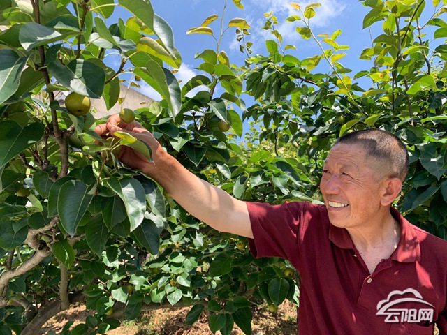 老汪种的梨有着很美的名字——“六月雪”,顾名思义,这种梨每年农历六月成熟上市,具有清脆、甘甜、水份足等优点。从嫁接成功至今,老汪种植“六月雪”已有十多年时间,梨园规模也已达到13.3公顷。年复一年的辛勤耕耘让老汪尝到了种梨的甜头,他开始带动乡邻一起发展。“我哪怕自己家果园的活儿还没忙完,也要去给那些种植户做技术指导,特别是贫困户,手把手教他们种梨。我自己种果树赚了钱,我想大家都跟着赚钱。小康社会,光是哪几家小康不行!”老汪朴实的话语令人动容。