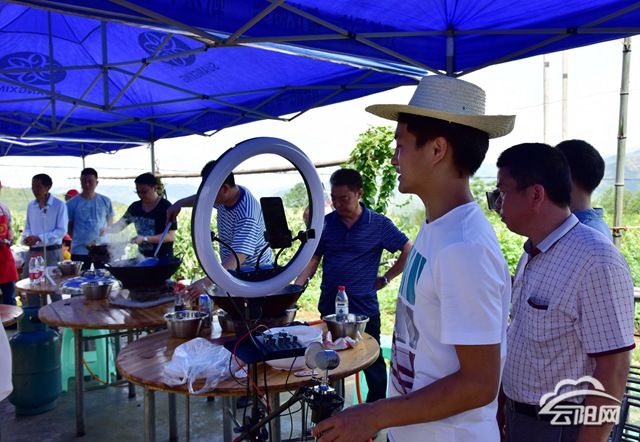 云阳网讯(记者 段斯斯)近日,新津乡向全乡群众发出直播带货邀请,开展“人人当主播助销农特产品”活动。来自乡机关单位和村(社区)的20余名主播,为脆桃、花椒、文峰鸡、绿壳土鸡蛋、新津银鱼等各类农特产品助阵“叫卖”。主播们还走进太胜村的桃园,向网友展示脆桃的新鲜甜美。活动中,村民、职工进行现场厨艺比拼,烹饪花椒鸡等菜肴,展示本地花椒、文峰鸡的美味。