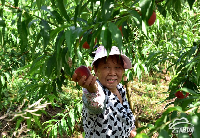 云阳网讯(记者 段斯斯)盛夏来临,正是桃子成熟的季节,新津乡贫困村太胜村200余亩桃园迎来了丰收,一个个鲜红欲滴的桃子挂满枝头,让人垂涎欲滴。