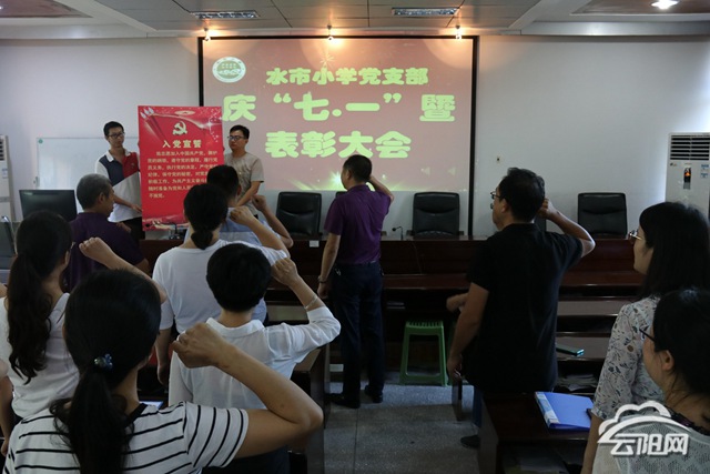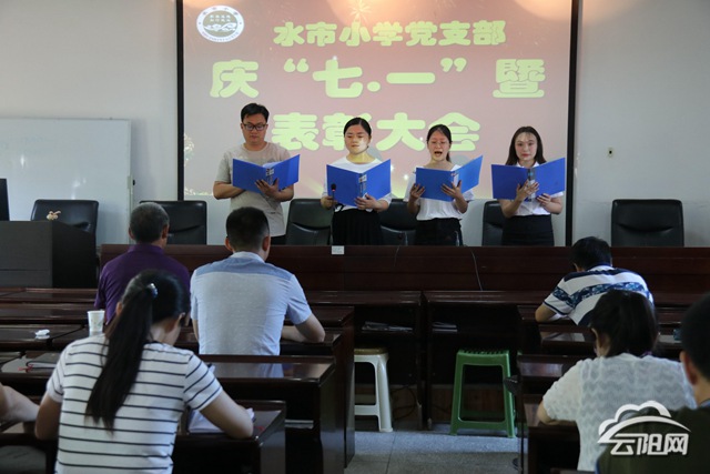 云阳网讯(通讯员 朱伟 朱云鸿)“99年的风雨兼程,99年的辉煌历史。99年的惊涛骇浪,99年的开拓进取……”党员们诵诗赛歌献礼党的生日。近日,水市小学隆重举行庆祝建党99周年暨表彰大会。