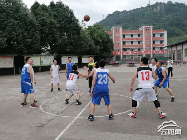 云阳网讯(通讯员 易守菊)7月1日,水口镇机关职工与建设银行云阳支行,在水口小学操场举行“庆七一”篮球友谊联赛。