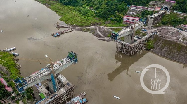 技术人员唐雄武现场介绍:“目前该桥主跨正进行挂篮悬臂现浇梁施工,共计44个节段,10#墩累计已完成9个节段,正在进行第9个节段养护工作,11#墩累计完成11个节段,正在进行第12个节段腹板钢筋绑扎工作。该桥预计将于2020年9月底中跨合拢。”