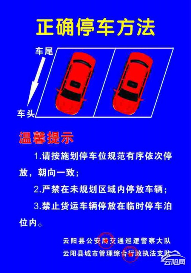 畅通城市交通,维护城市秩序,共建城市文明,是每位云阳县市民的责任和义务。敬请各位车主、驾驶员自觉遵守相关规定,规范有序停放车辆,为广大市民群众的生产生活提供方便,为创造整洁优美、宜居宜业城市环境做出贡献。