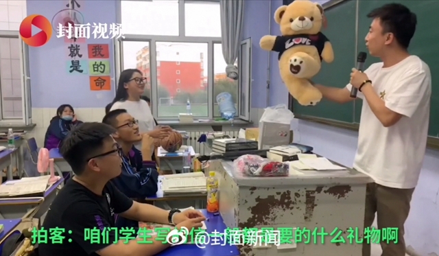 1.【好暖!征集毕业礼物并兑现 老师帮高三女孩要男生微信】7月1日,吉林松原当地一中学高三老师为学生准备毕业礼物的视频走红网络。准备礼物的王钰老师称自己从6月初开始征集学生想要的礼物,有学生想要的礼物是隔壁班男同学微信,有的是玩偶、有的是自己签名的篮球。视频中,王老师还为全班的女同学都准备了口红作为礼物。他还称自己和学生相处了3年,有很深的感情,礼物只是给学生留一个纪念。