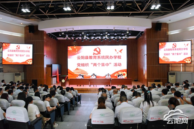 云阳网讯(通讯员 李建森)近日,县委教育工委在中山外国语学校举行民办学校党组织“两个集中”活动,并召开民办学校党建工作会。全县民办学校、培训机构负责人及党员,挂靠学校党组织书记和派出党建指导员共200余人参加活动及会议。