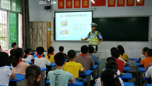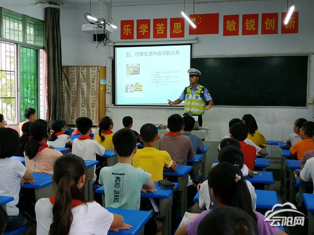 云阳网讯(通讯员 谢方伦)为了全面加强学生交通安全教育,提高学生的自我保护意识和遵守交通法规的意识,近日,双江小学邀请公巡中队易鑫源警官到校开展“知危险,会避险”暑期交通安全教育。