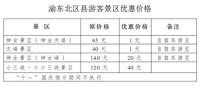 注:“十一”国庆假日期间景区不执行1元/人政策