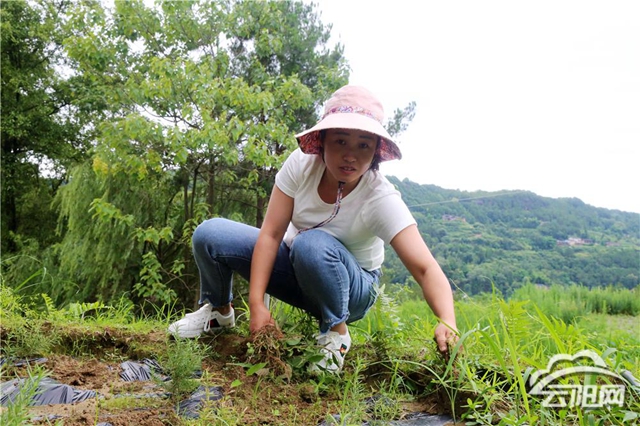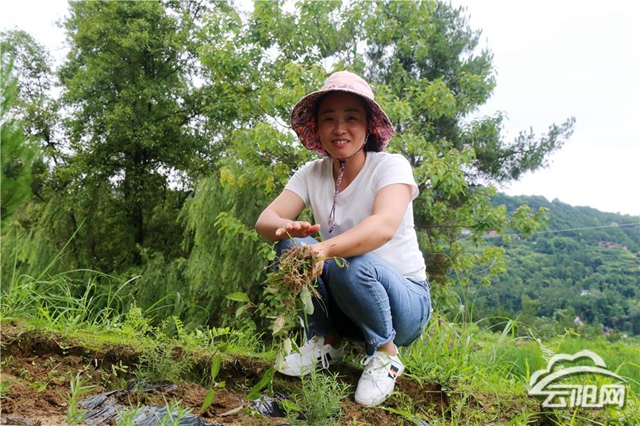 种植户万学琴早早地来到基地,给绿油油的迷迭香除草。“我到湖南考察了两次,了解到我们村的海拔和气候都比较适合迷迭香的生长。”
