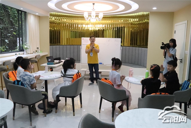 “八百标兵奔北坡,炮兵并排北边跑......”在云阳妇女儿童中心2楼培训中心的语言班,记者看到,老师正在教学生们绕口令《八百标兵奔北坡》,学生们兴趣满满,聚精会神地跟着老师学习,随后还逐个到讲台上展示自己的学习成果;在三峡民俗文化研学(城市)营地美术教室内,学生们手握画笔,尽情享受涂鸦的快乐,一幅幅与众不同的画作相继呈现。