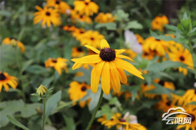 当车行至清水,单调的公路立刻变身为多彩的世界,夏日的缤纷不经意闯入人们眼帘。公路旁、绿树下、草坪里,朵朵金黄的花朵。
