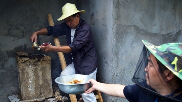 云阳网讯(通讯员 杨奎)7月16日,在红狮镇咏梧社区九道村,跟随扶贫工作队进村零距离感受农家采摘土蜂蜜。这里位于大巴山尾脉,三峡库区腹地,周围村庄家家户户养蜜蜂,少的七八桶、多的数百桶,蜂蜜成为山里人重要的收入来源,村民们风趣地称之为“懒庄稼”。