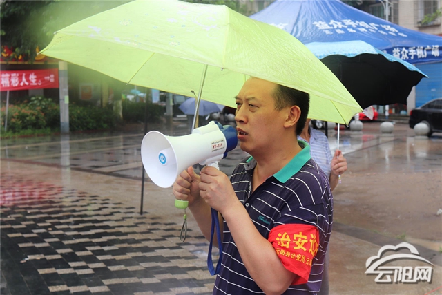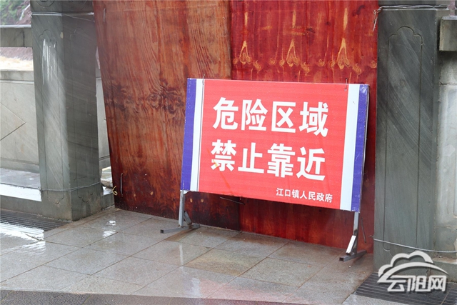 在江口镇滨河广场,为应对降雨带来的水位急涨,社区组织党员干部在广场拉上警戒线,坚持在一线巡逻,排查隐患,确保群众生命财产安全。