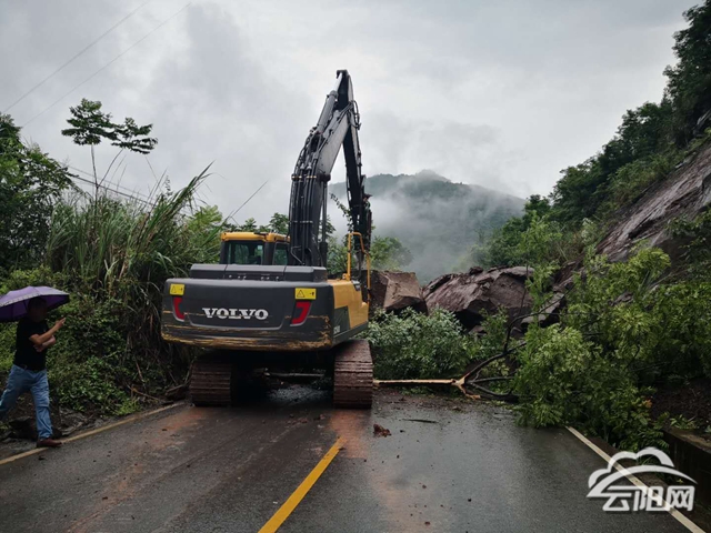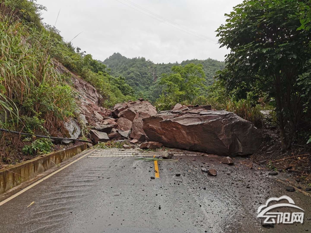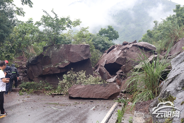云阳网讯(记者 付骜)受强降雨影响,7月16日中午12点30分左右,龙云路栖霞镇至云阳镇13公里处突发山体塌方,1000多立方米巨石形成的塌方体将道路阻断长达30米左右,车辆无法通行。