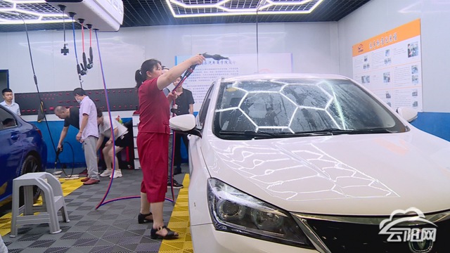 在汽车美容培训课堂,学员与教师一对一互动,实操课程中教师亲手为学员做示范,做到理论知识与实际操作相结合,让学员不仅听、看,还能亲手操作,真正为学员找到了一项就业技能,提供创业就业机会。
