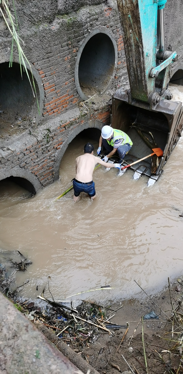 17日15时,牛庆接收到黄石隧道进口水位上涨信息,由于降水量大与山体积水,上游水位半小时间上涨两米。当即,梁鹏与牛庆前往现场查看,判断下游桥梁涵洞排水量不足,将可能出现洪涝。