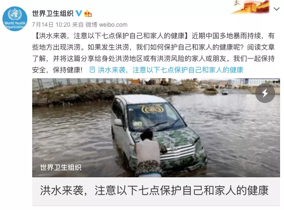 近期,南方汛情牵动人心,形势严峻。世卫组织官微发出提醒,洪涝可能会增加水和病媒传播疾病的传播,例如伤寒、霍乱、疟疾和黄热病,并就怎样保护自己和家人的健康给出7点提示。