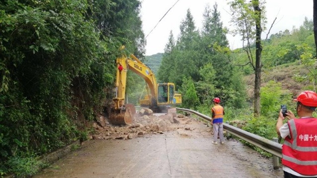 灾情发生后,中国十九冶开云高速项目部第一时间将挖掘机、装载机、自卸汽车等机械设备运送到险情路段,同时,派出8名项目部工作人员协助镇政府抢修道路,20人经过 12小时的奋力抢修,终于疏通了发生险情的道路,保障了人民群众的生命财产安全。