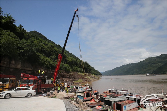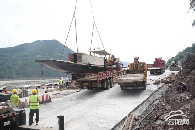 云阳网讯(记者 赵晓龙)7月27日上午10时20分,故陵镇大地坪码头,牌照号为“渝云渔80017”的铁质渔船破水而出,被吊装到大货车上运至清水湖。伴随着67艘渔船纷纷被吊装运走,标志着全县首批134名渔民率先告别水上生活。