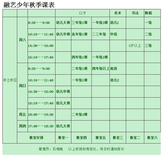 秋季开设科目有:少儿口才、少儿美术、少儿形体、硬笔书法。