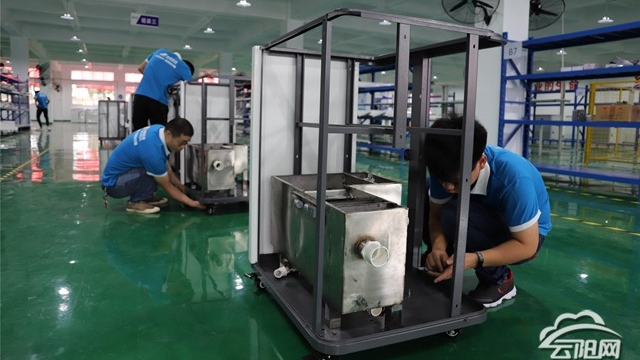 近日,位于工业园区人和组团南帆科技(重庆)有限公司生产车间内,操作人员正在进行餐厨垃圾智能处理设备的生产、组装工作。