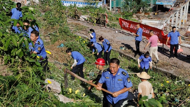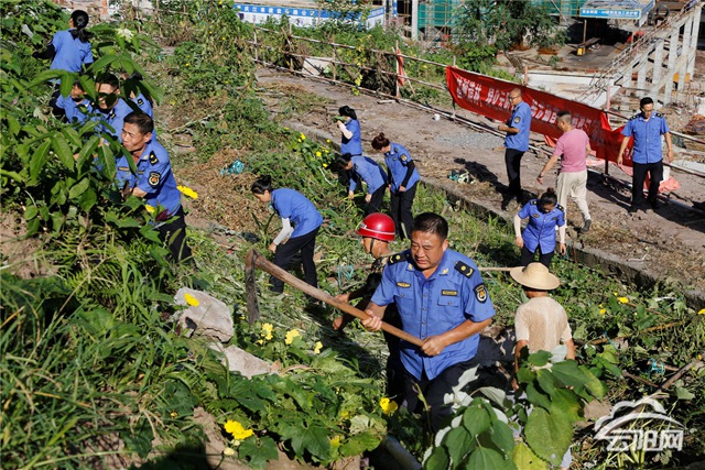 云阳网讯(记者 王彬彬 洪琳)8月4日,在迎宾大道云商大厦附近的“菜园地”,记者看到居民自建的菜地有的用砖块砌成,有的用泡沫箱围挡放泥土搭建,还搭起了架子、保温棚等让瓜果生长,菜园里蚊虫满天飞,污水横流,整个环境呈现着脏、乱、差。铲除现场,执法人员冒着炎热,手持锄头等工具,对菜园地进行清理,一片忙碌景象。