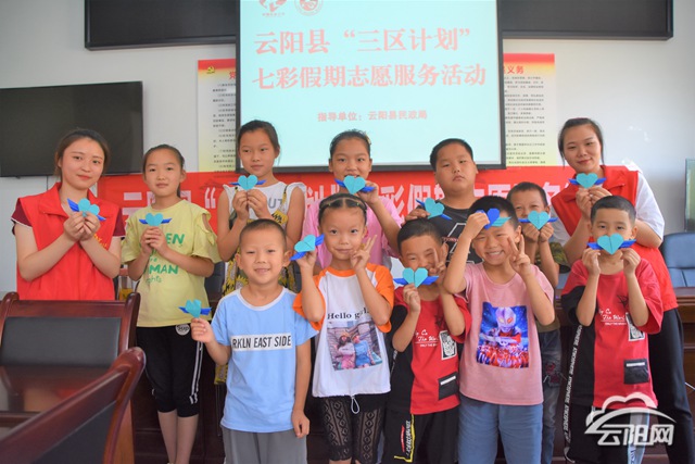 在云阳民政局的指导支持下,8月6日上午,太阳徐徐升起,照耀着大地,折射在小朋友的脸上,他们稚嫩可爱的脸蛋,作为后浪一代的他们充满朝气,孩子们早早的来到胜利村三楼会议室,可见内心激动的与“三区计划”七彩假期见面。活动开始前由社工李老师为学生讲解本次活动的课堂秩序,上下学途中的安全,并选定班上班长。今日活动从“作业辅导”、“艺术—手工折纸”为主题展开,活动中社工李老师、谭老师认真耐心的辅导学生做作业,为其答疑解惑。在“艺术—手工折纸”中,同学们认真跟着两位老师的步伐,小心翼翼的折好每一步,他们用心付出,将自己的爱带给家人,拿着折好后的爱心,他们脸上流露出喜悦的笑容,每一位孩子都拥有着爱,也想把爱带给家人,后浪的他们用爱行动。