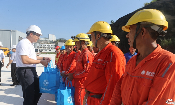 云阳网讯(记者 刘太兴 朱学徽)连晴高温天气下,仍有众多劳动者坚守一线,为保障云阳经济社会发展、维护城市正常运行挥洒汗水。8月10日,县委副书记、县长覃昌德率队到我县部分重点工程项目、重点企业、重点民生保障岗位现场,看望慰问奋战在一线的干部职工,代表县委县政府向他们致以诚挚问候和衷心感谢。