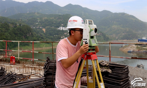 在工地的一角,“90后”测量员魏寅鹏正在紧张校对工程施工的精准度。他说,越抢抓工期,越不能有丝毫马虎。为了严格把控工程施工精准度,一天下来,魏寅鹏顶着热日在工地上走个几万步都是常态。
