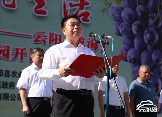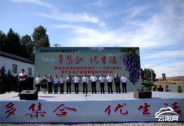云阳网讯(记者 赵晓龙 朱学徽)“我宣布,云阳·威海多集合现代农业菜篮子小程序上线、多集合园葡萄园开园、云阳县2020年中国农民丰收节正式开幕!”8月15日,云阳县2020年中国农民丰收节暨鲁渝东西部扶贫协作项目——云阳·威海多集合现代农业产业园葡萄园开园仪式在凤鸣镇马轩村举行,副县长刘桂虎宣布开园,县政府党组成员刘正杰参加活动。