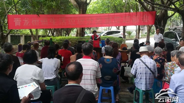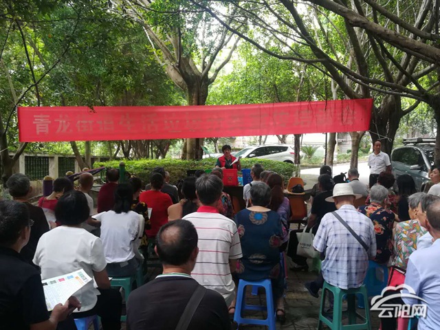 8月20日,青龙街道青龙嘴社区在工商银行小区举行垃圾分类知识宣传活动,面对面向市民宣传为什么进行垃圾分类、怎样进行垃圾分类,引导大家积极参与到垃圾分类中来,共同创造美好生活环境。(付官碧 摄)
