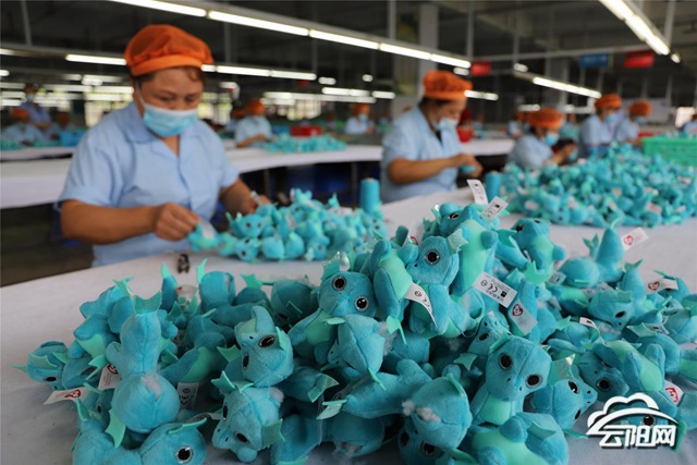 8月20日,在云阳县工业园区雄业玩具制衣有限公司,工人正在生产车间加工制作纺织类玩具等。该公司主要生产纺织类玩具、服装和其它纺织品,今年解决了当地务工人员560人,每月每人务工收入3000至4000元,有力带动了当地群众脱贫增收。(记者 邓磊 实习生 张诗怡 摄)