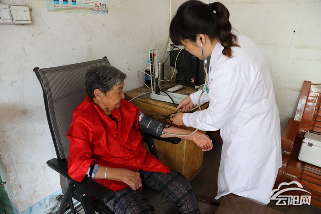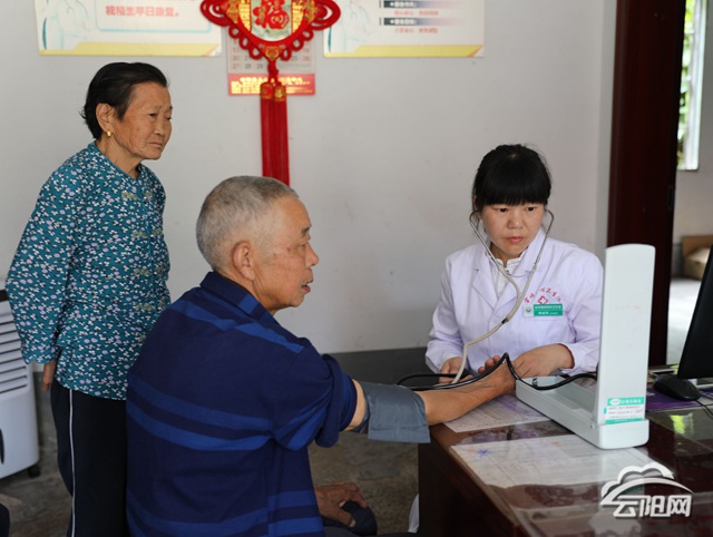 “最近天气变化大,您身体有哪些不舒服?要记得按时服药哈。”夏日清晨,宝坪镇双坝村的一农家院落里,一位女村医正在给老人们测量血压,做健康体检,讲解保健知识,轻声细语交谈。