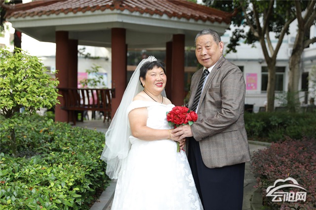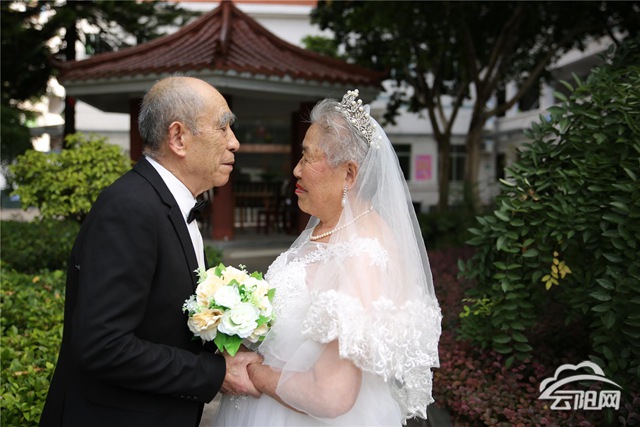 据了解,这6对老夫妻中,有的是两人形影相伴的空巢老人,也有是失去唯一孩子的失独老人。在时代的大背景下,老人们当年结婚有的是父母之命、媒妁之言、也有的是青梅竹马、自由恋爱。伍玉梅,喻吉现老人就属于自由恋爱,两人相识于沙市铁厂,他们从相识,相知,相爱到进入婚姻生活用了1年的时间。时至今日,他们已经走过了60个年头。伍玉梅今年82岁,喻吉现今年也刚满86岁。面对以后,伍玉梅表示只想陪着她的老头子走完余生。福利院社工袁东琼告诉记者,对于老年夫妻来说,在他们的一生中没有穿过婚纱,也没有拍过婚纱照,城乡社会福利院组织此次活动想圆老人们一个婚纱梦。
